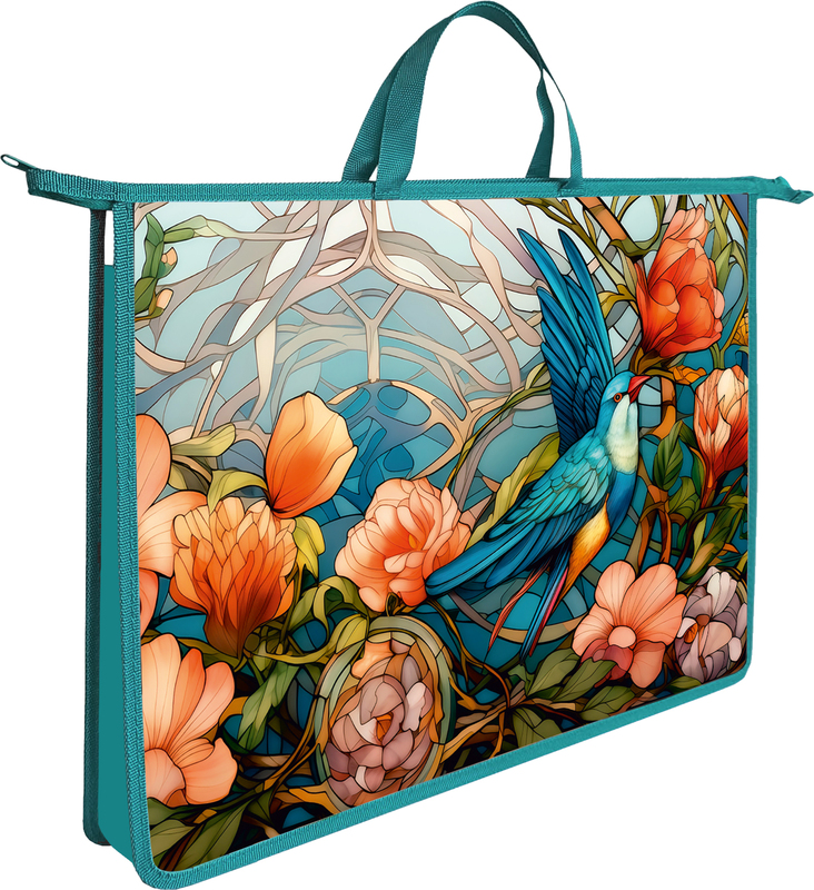 Папка А3 с ручками Lamark "Райская птица", печать по пластику с двух сторон, 335х470х70 мм, на молнии, (индив. упак)