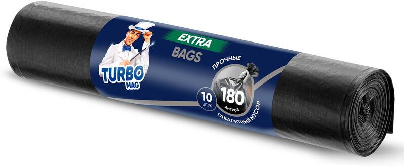 Мешки д/мусора 180л TURBOMAG Экстра черные 40мкм 10шт/рулон
