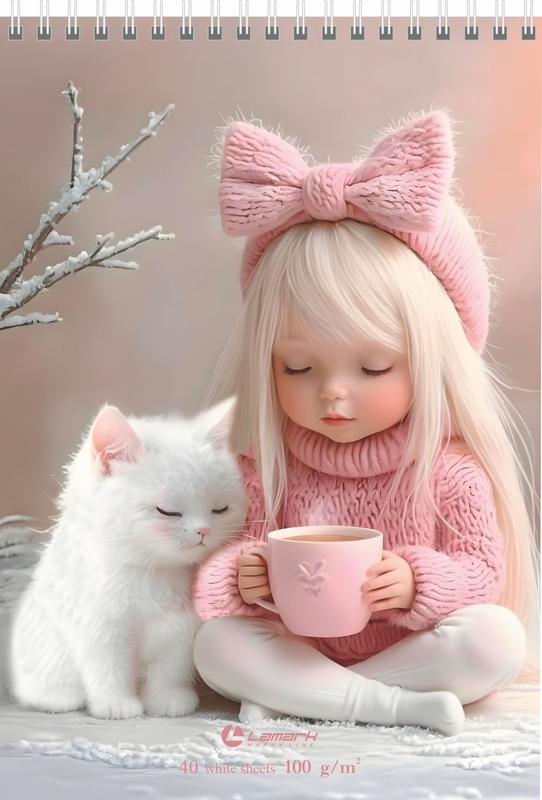 Скетчбук Девочка с котиком, А5, 40 л., 100 г/м2, выборочный уф-лак, твердая подложка, спираль сверху