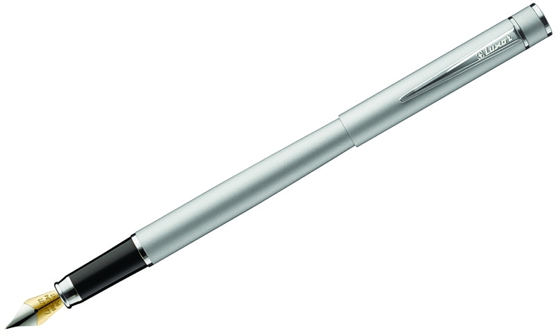 Изящная перьевая ручка Luxor "Sleek" в металлическом серебряном корпусе с хромированными элементами.