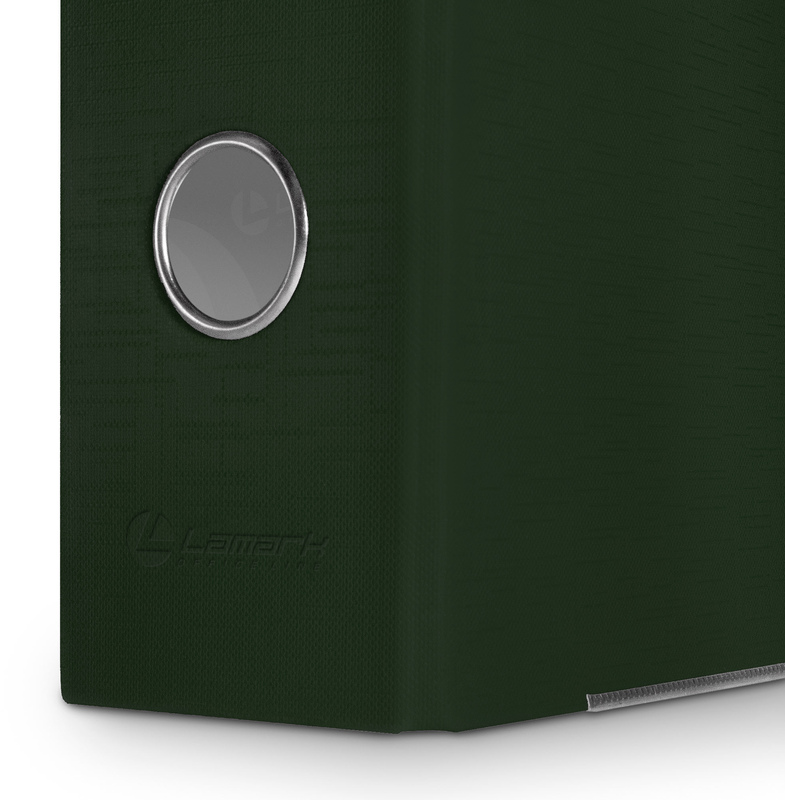 Папка-регистратор LAMARK РР с арочным механизмом изготовлена из плотного картона, с внешней стороны заламинированного полипропиленовой пленкой (РР) с текстурой "лен", внутри оклеена бумагой с алфавитно-цифровым полем для классификации на левой стороне. Прорези на крышке удерживают папку закрытой даже при большом количестве документов. Ширина корешка 75 мм. Вместимость до 480 листов формата А4. Нижние края защищены металлическим кантом, что сохраняет папку при длительной интенсивной эксплуатации. Карман со сменной индексной вставкой на корешке. Цвет зеленый. Поставляются в собранном виде.