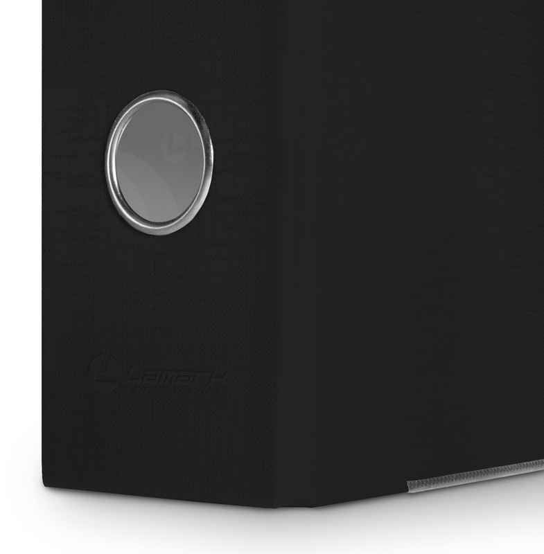 Папка-регистратор LAMARK РР с арочным механизмом изготовлена из плотного картона, с внешней стороны заламинированного полипропиленовой пленкой (РР) с текстурой "лен", внутри оклеена бумагой с алфавитно-цифровым полем для классификации на левой стороне. Прорези на крышке удерживают папку закрытой даже при большом количестве документов. Ширина корешка 75 мм. Вместимость до 480 листов формата А4. Нижние края защищены металлическим кантом, что сохраняет папку при длительной интенсивной эксплуатации. Карман со сменной индексной вставкой на корешке. Цвет черный. Поставляются в собранном виде.