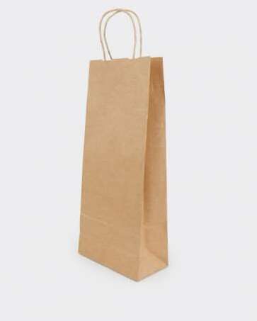 Пакет бумажный 33*12*8 с кручеными ручками ПОД БУТЫЛКУ крафт, 250шт/уп
