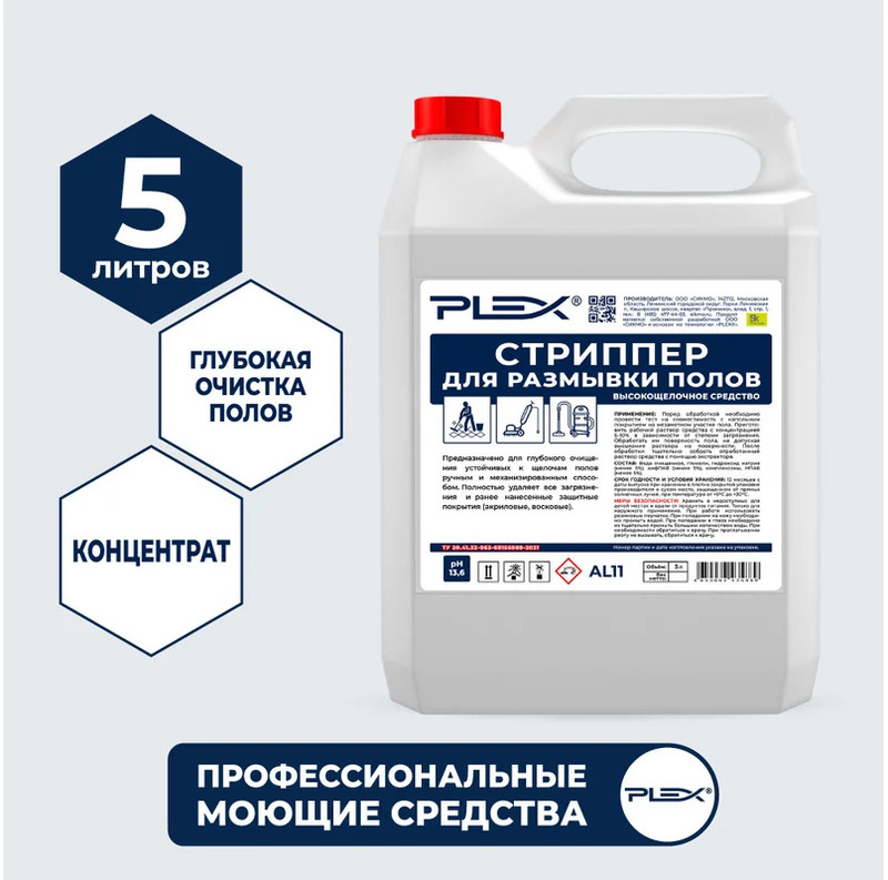 Средство моющее для пола PLEX Стриппер высокощелочное для глубокой очистки 5л.