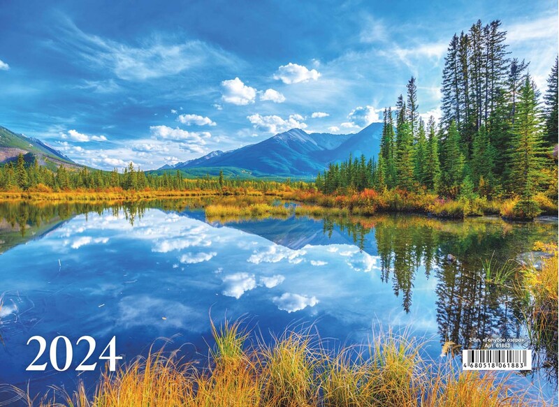 Календарь квартальный на 3-х спиралях 3-х блочный 2024 "Голубое озеро", Lamark