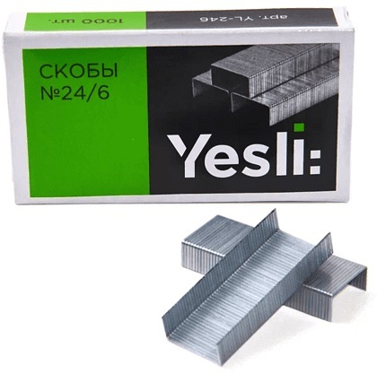 Скобы 24/6 «Yesli:» обладают хорошей прочностью и скрепляют до 30 листов офисной бумаги.