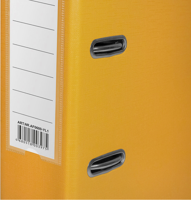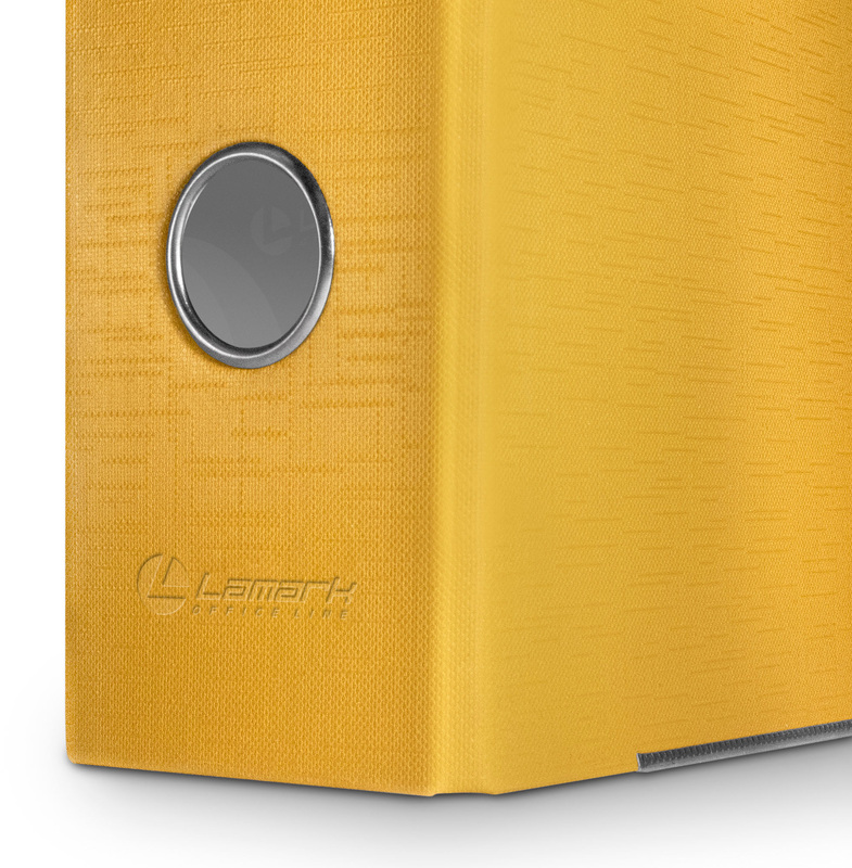 Папка-регистратор LAMARK РР с арочным механизмом изготовлена из плотного картона, с внешней стороны заламинированного полипропиленовой пленкой (РР) с текстурой "лен", внутри оклеена бумагой с алфавитно-цифровым полем для классификации на левой стороне. Прорези на крышке удерживают папку закрытой даже при большом количестве документов. Ширина корешка 75 мм. Вместимость до 480 листов формтаат А4. Нижние края защищены металлическим кантом, что сохраняет папку при длительной интенсивной эксплуатации. Карман со сменной индексной вставкой на корешке. Цвет желтый. Поставляются в собранном виде.