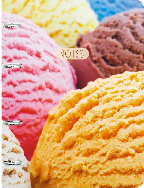 Тетрадь на кольцах А5 120л. Обл.- мелованный картон 500г/м2, ламинация soft touch. Квадр. кореш. Скругл. уг. Съемный бл кл.70г. Инд.уп. Ice cream