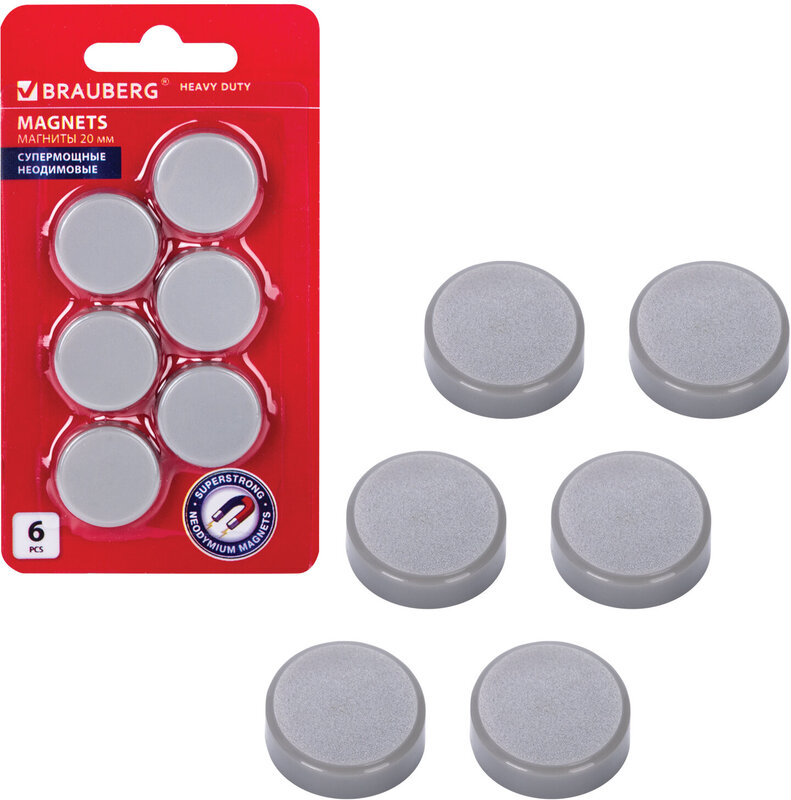 Набор мощных неодимовых магнитов BRAUBERG "HEAVY DUTY" используются для магнитно-маркерных и стеклянных магнитно-маркерных досок. Благодаря большой силе удерживают до 6 раз больше листов бумаги на магнитной поверхности.