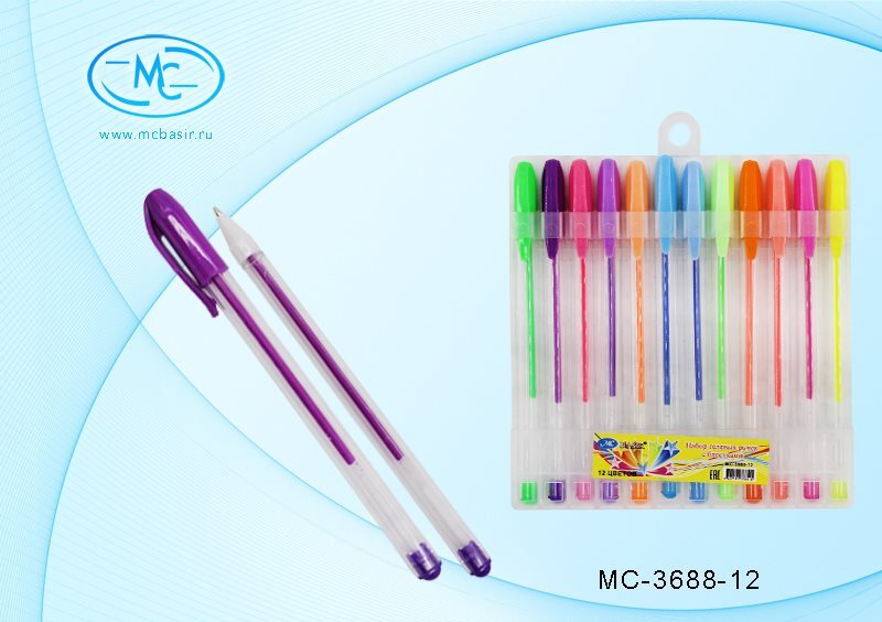Набор ручек гелевых 12 цв Неон+цветные МС-3688-12