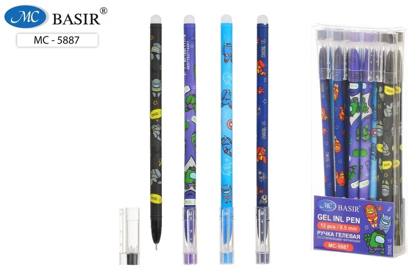 Ручка со стираемыми чернилами гелевая: "АСТРОНАВТЫ" цветной корпус с рисунком (ассорти) толщина пишущего наконечника-0,5 mm; цвет чернил-синий.