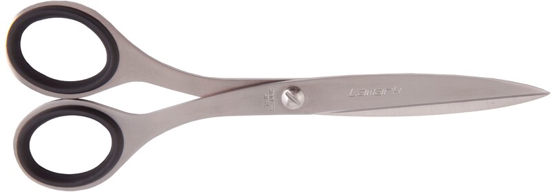 Ножницы LAMARK универсальные цельнометаллические из нержавеющей стали, с симметричными кольцами, с резиновыми вставками. Размер ножниц 16,5 см, длина лезвий 8 см, толщина лезвий 2,0 мм. Поставляются на картонной подложке с еврослотом.