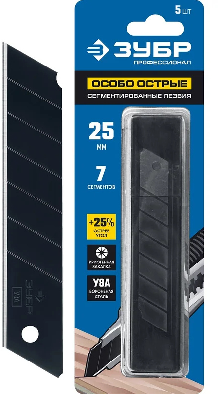 Лезвия Зубр для строительного ножа сегментированные 25 мм, 5шт/уп
