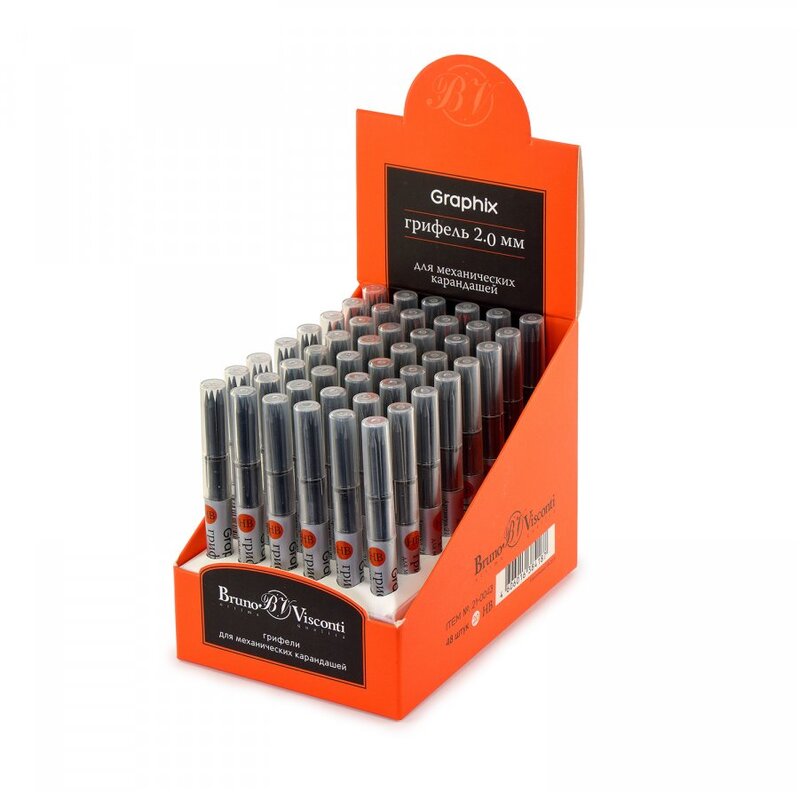 Грифели запасные BrunoVisconti для механических карандашей GRAPHIX. Твердость НВ, толщина 2 мм. В Упаковке 5 шт. стержней. Размер упаковки 9х95х8 мм.
