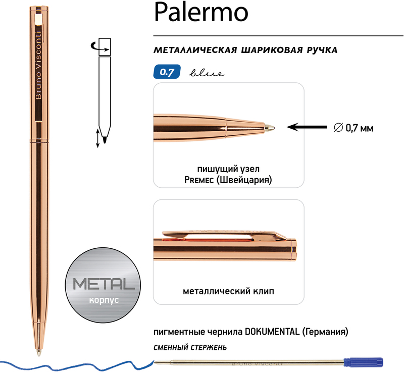 Ручка шариковая 0,7 мм синяя с поворотным мех. PALERMO (роз зол корпус, футляр черный) 20-0250/627