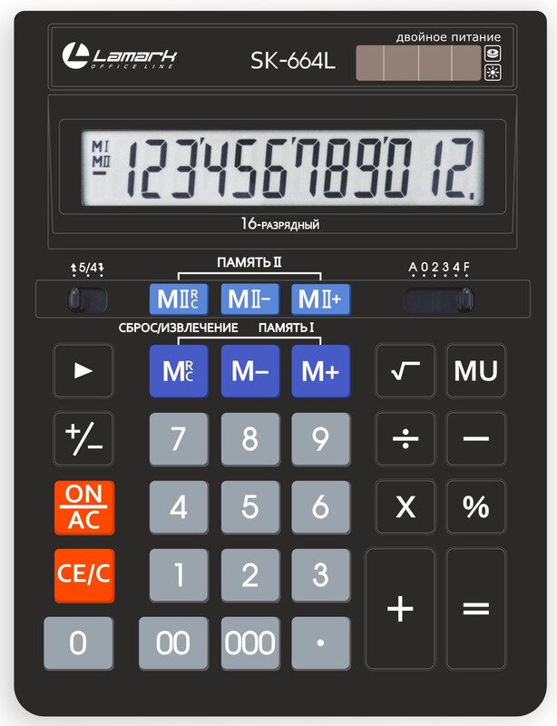 Калькулятор настольный Lamark SK-664L, большой (153х199 мм), 16 разрядов, двойное питание, черный