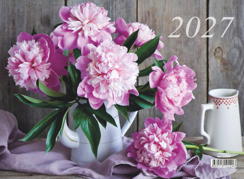 Календарь квартальный на 3-х спиралях 3-х блочный 2027 "Пионы", Lamark