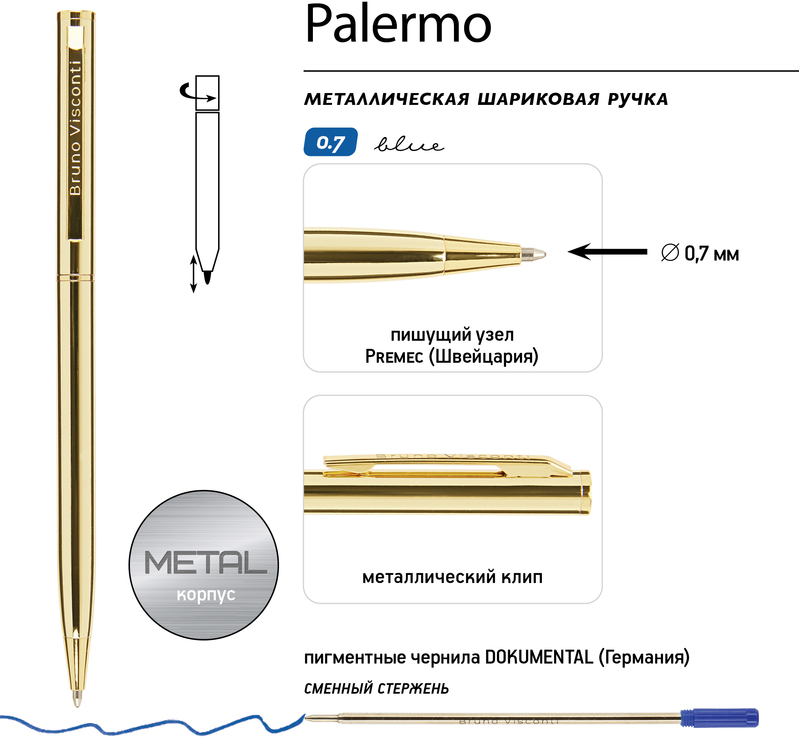 Ручка шариковая 0,7 мм синяя с поворотным мех. PALERMO (корпус зол, футляр черный) 20-0250-26/09