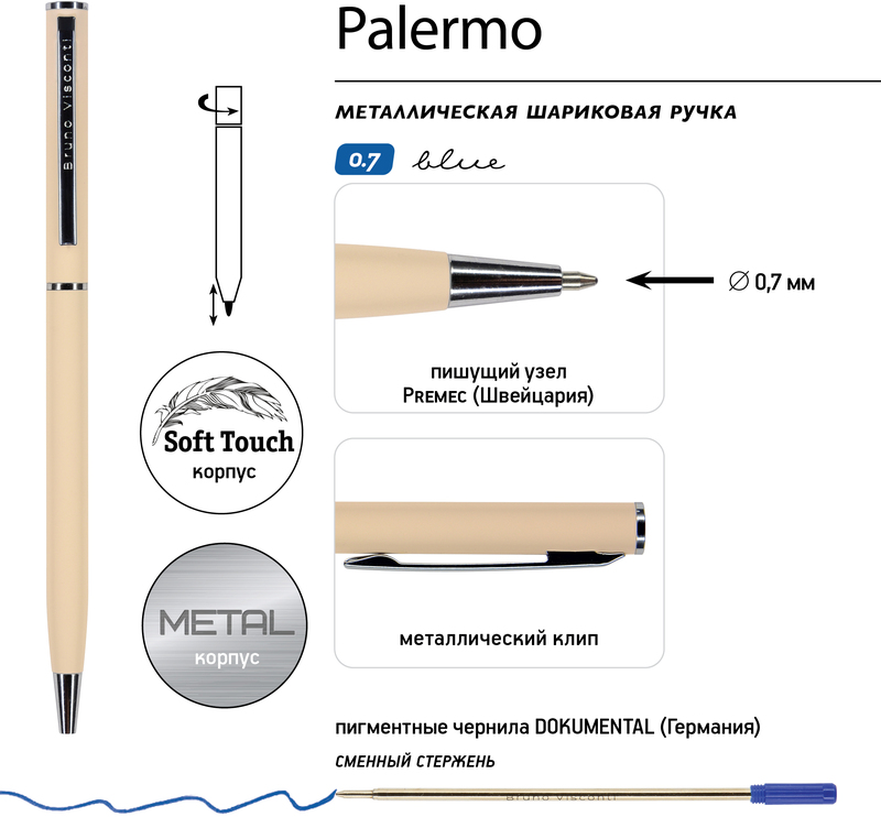Ручка шариковая 0,7 мм синяя с поворотным мех. PALERMO (корпус пудровый, футляр черный) 20-0250-16/0