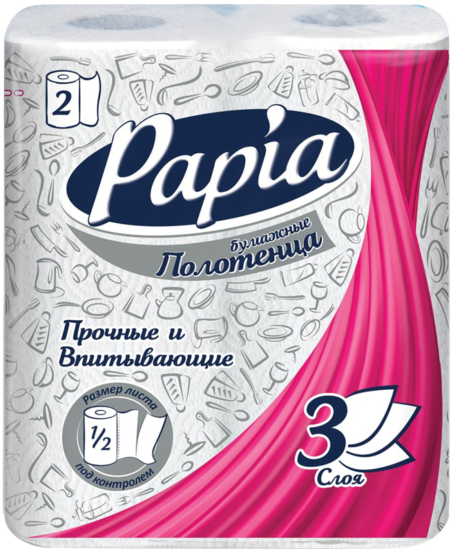 Полотенца бум. PAPIA 3сл. 2шт/уп