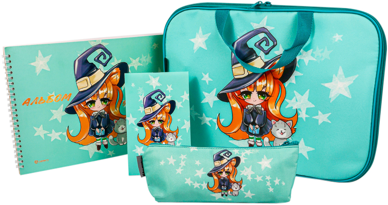 Набор подарочный Lamark "Волшебница": папка-портфель А4 с ручками, косметичка, альбом А4, блокнот А6