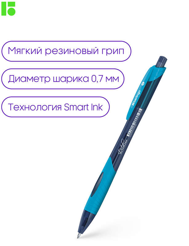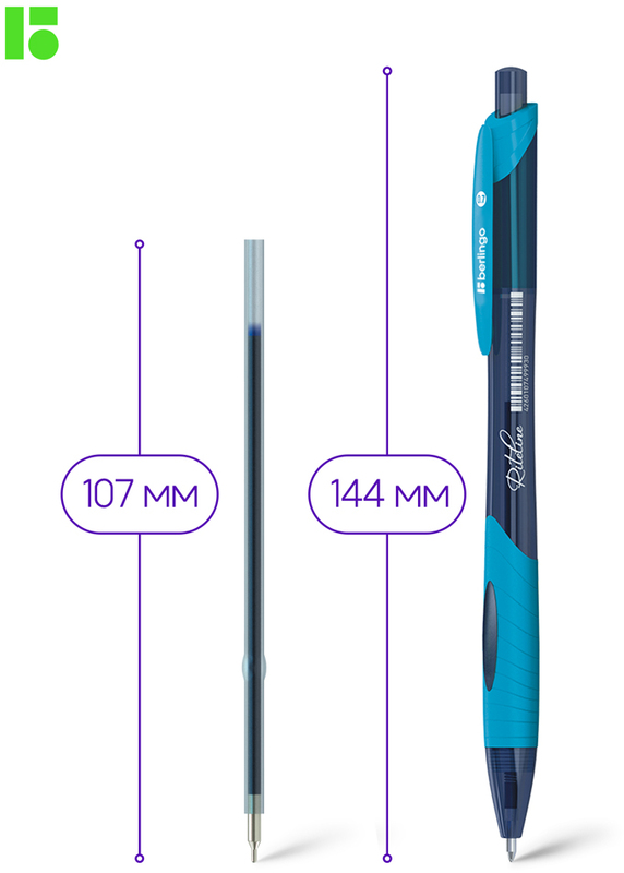 Шариковая автоматическая ручка Berlingo Riteline в стильном контрастном дизайне. Тонированный круглый корпус ручки с применением двойного литья, резиновая зона захвата и пластиковый клип создают дополнительный комфорт при письме. Диаметр пишущего узла составляет 0,7 мм, толщина линии письма – 0,5 мм, а длина письма – 1000 м.