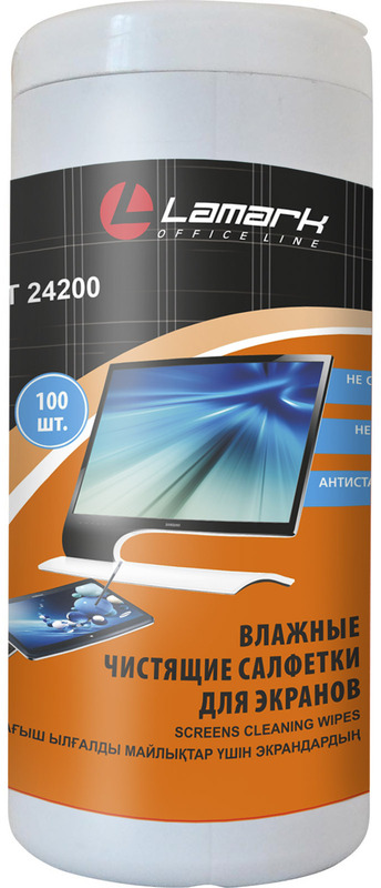 Влажные чистящие салфетки LAMARK предназначены для очистки всех типов экранов и мониторов. Эффективно удаляют пыль, жирные пятна и другие загрязнения, не повреждая поверхность экрана. Устраняют электростатические заряды – пыль меньше оседает на экран. Содержат антибактериальный компонент. Салфетки из нетканого материала Мельтблаун не оставляют на очищаемой поверхности разводов и ворса. Размер салфетки 150х130+/-5 мм, 100 шт. в тубе.