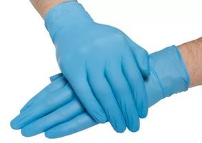 Гипоаллергенные перчатки из 100% синтетического нитрила голубого цвета.