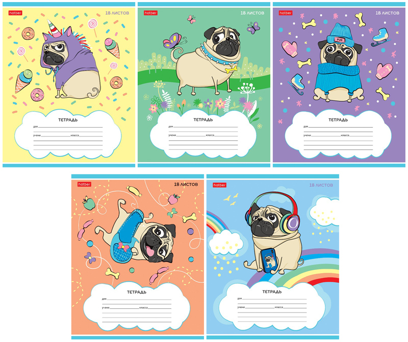 Тетрадь 18 л клетка Мопс 18Т5В1