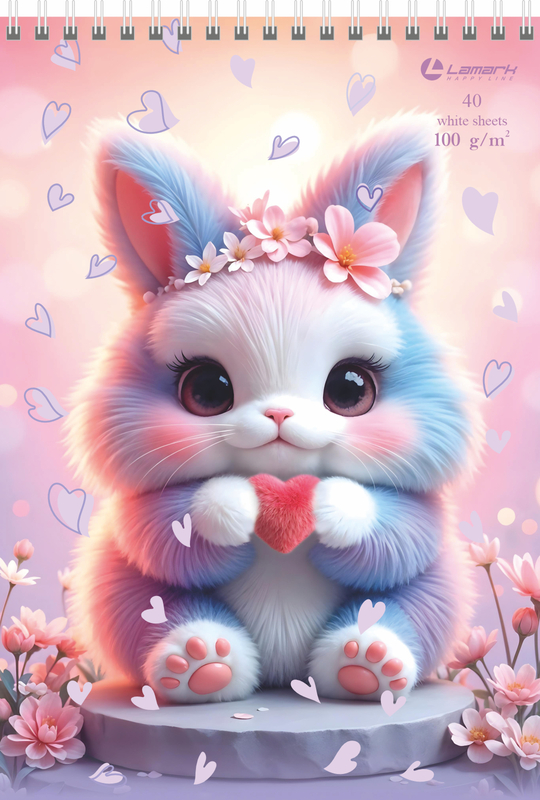 Скетчбук Пушистый зайчик, А5, 40 л., 100 г/м2, выборочный уф-лак, твердая подложка, спираль сверху