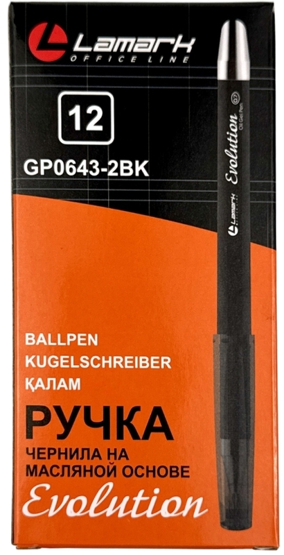 Ручка Lamark Evolution в пластиковом корпусе с покрытием Soft touch (антистресс), металлизированный наконечник. Чернила на масляной основе Oilgel, мягкое, комфортное письмо, пишущий узел 0,7 мм. Цвет чернил: черный, соответствует цвету корпуса. Поставляются в цветной картонной коробке по 12 штук.