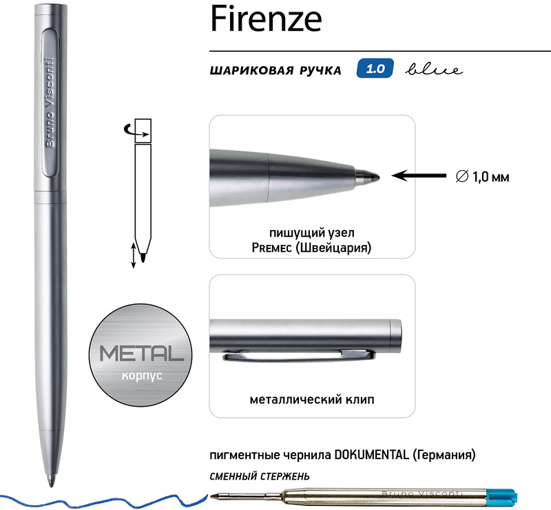 Шариковая металлическая ручка из коллекции «FIRENZE» от Bruno Visconti - бизнес-аксессуар, с которым вы всегда будете чувствовать себя уверенно и комфортно.