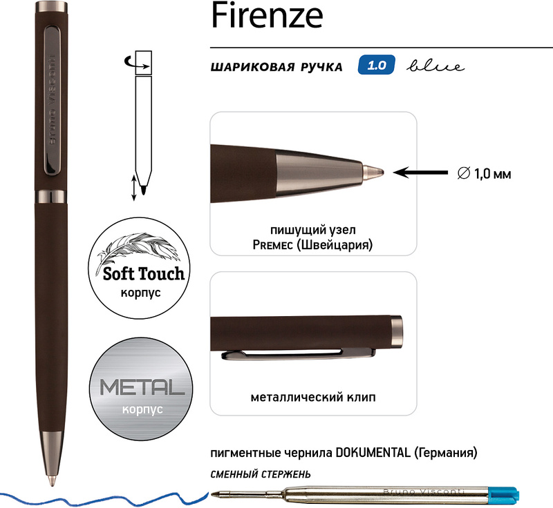 Шариковая металлическая ручка из коллекции «FIRENZE» от Bruno Visconti - бизнес-аксессуар, с которым вы всегда будете чувствовать себя уверенно и комфортно.