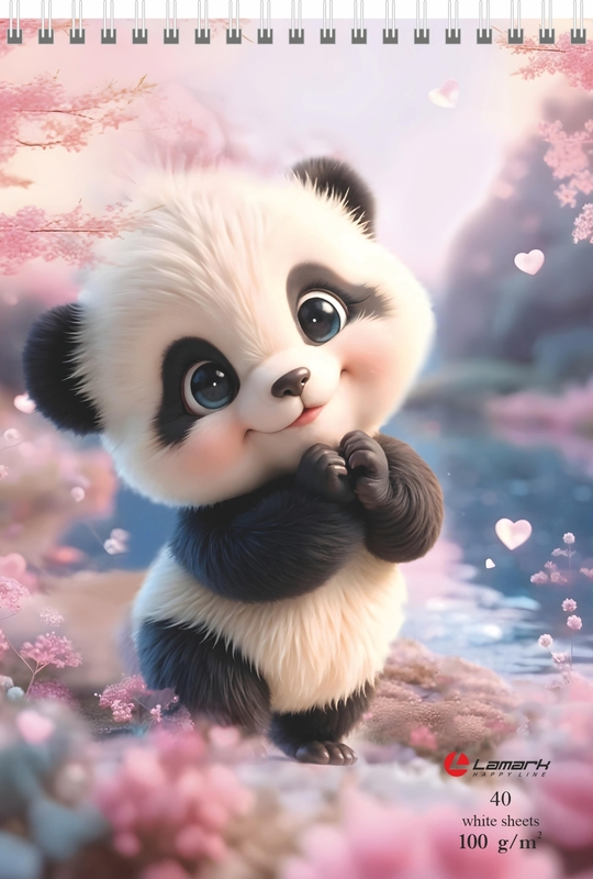 Скетчбук Пандочка, А5, 40 л., 100 г/м2, выборочный уф-лак, твердая подложка, спираль сверху