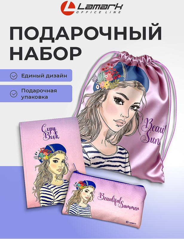 Набор подарочный Lamark "Морячка": сумка на шнурке, тетрадь 48 л., косметичка