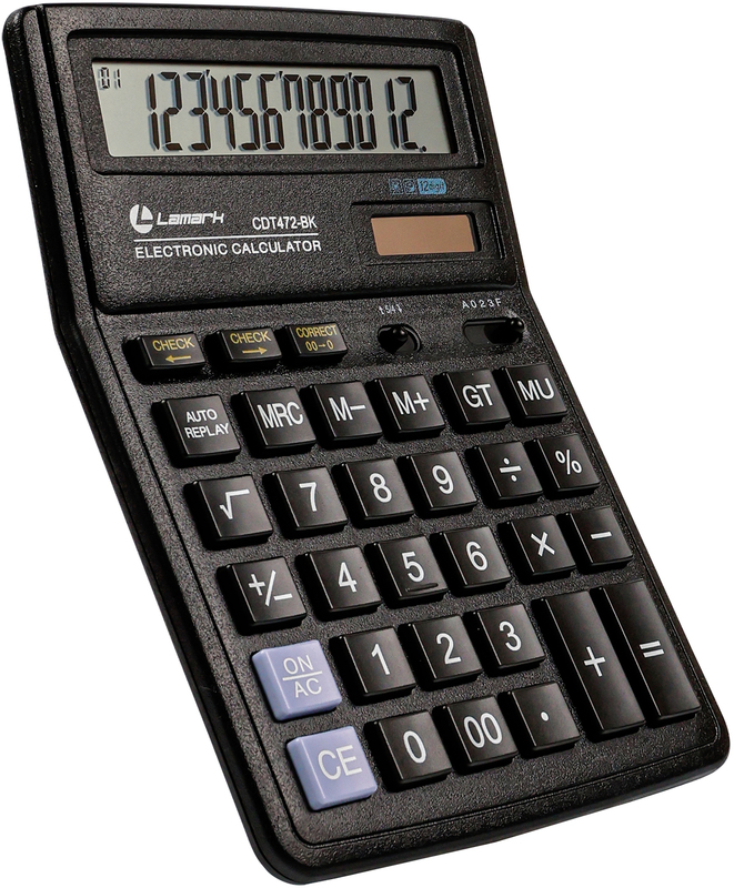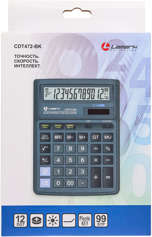 Калькулятор LAMARK 12 разрядов, большой настольный, 193х143х38,4 мм, 2-ое питание, коррекция 99 шагов, черный, CDT472-BK