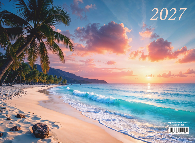 Календарь квартальный на 3-х спиралях 3-х блочный 2027 "Тропический закат", Lamark