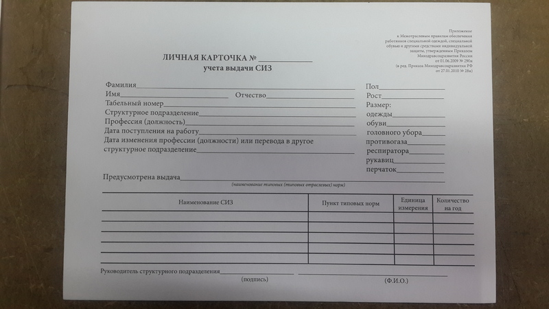 Личная карточка учета выдачи СИЗ А5, 1+1,160гр.