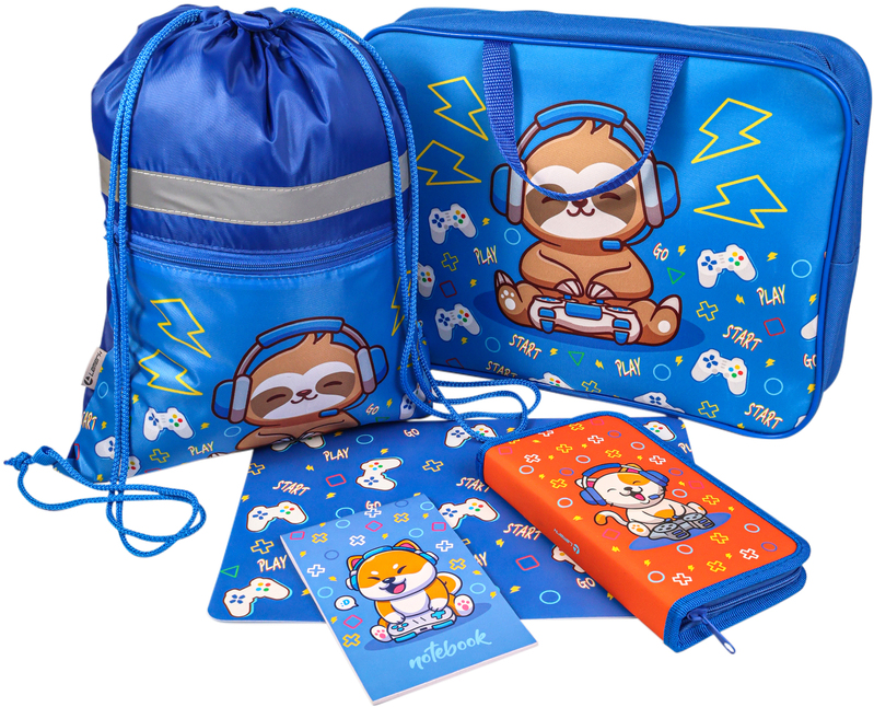 Набор подарочный Lamark "Little Gamers" (Маленький геймер): папка-портфель А4 с ручками, пенал, сумка для обуви, покрытие на стол А4, блокнот А6