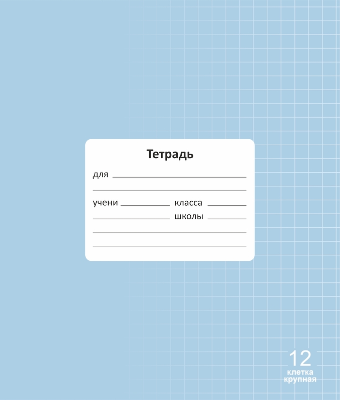 Тетрадь школьная ученическая, в КРУПНУЮ КЛЕТКУ. Внутренний блок: белая офсетная бумага плотностью 65 г/м2, белизна 100%, линовка блока голубым цветом, поля красные, формат А5 (170х205 мм), 12 листов. Обложка: мелованный картон. 1 дизайн в термоусадочной пленке по 10 шт.