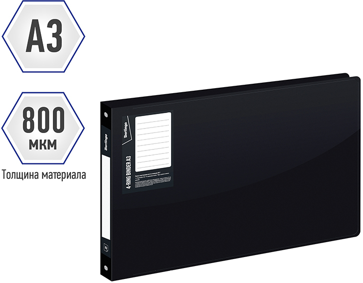 Папка на 4-х кольцах А3 30 мм BERLINGO, горизонтальная, черная