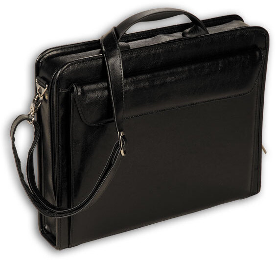 Вместительный аксессуар с каркасным основанием надежно защищает документы.