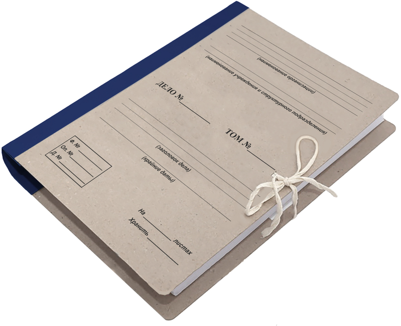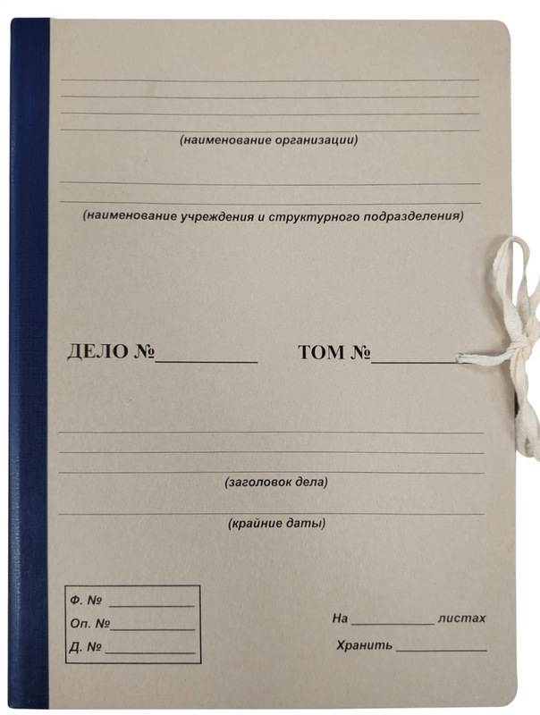 Папка архивная А4 для переплета 50 мм "Форма 21" с гребешками, 4 отверстия, синяя, завязки