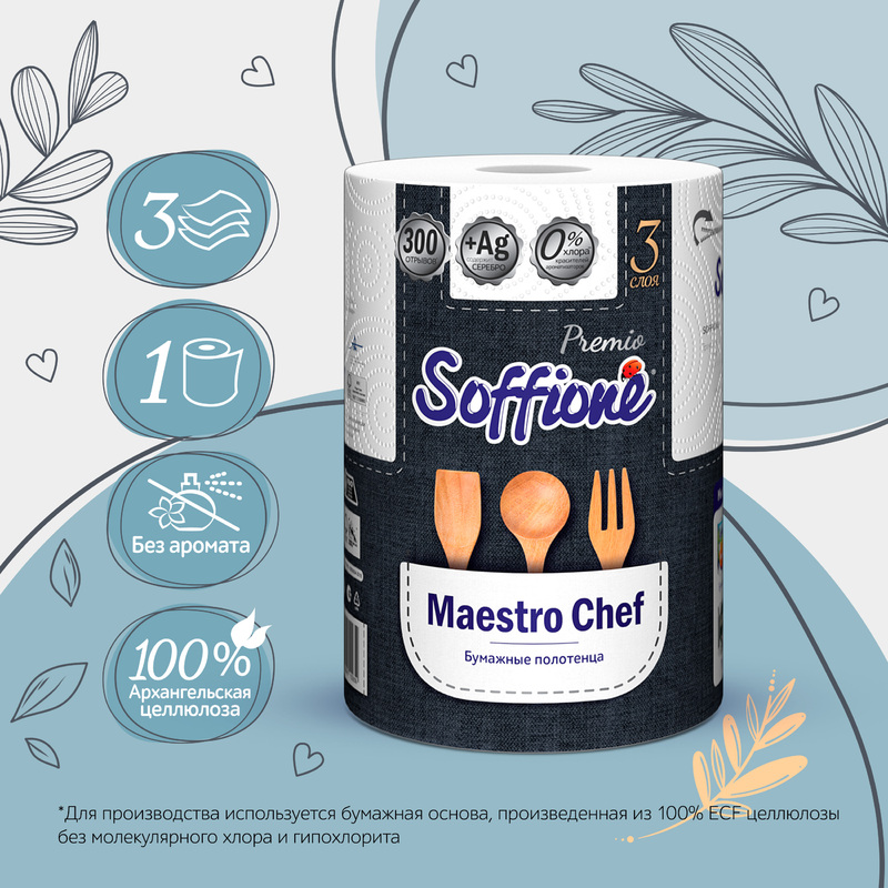 Полотенца бумажные SOFFIONE Premio Maestro Chef 3сл (33м) 1рул/уп