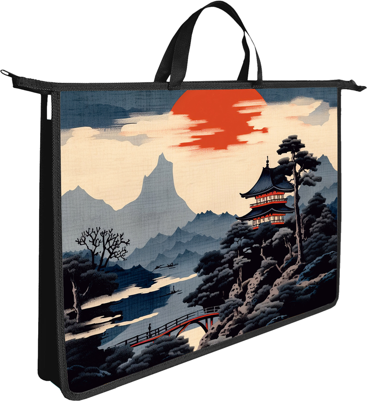 Папка А3 с ручками Lamark "Японский пейзаж", печать по пластику с двух сторон, 335х470х70 мм, на молнии, (индив.упак)