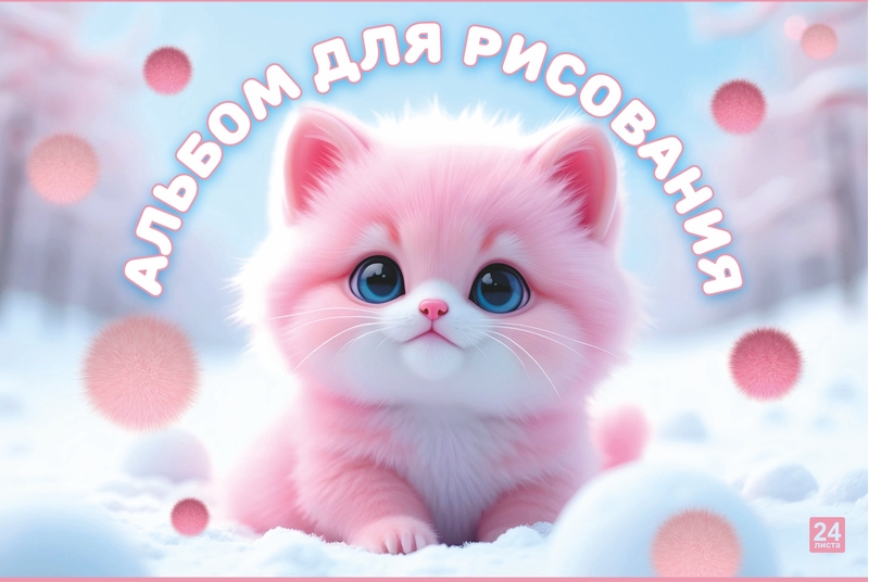 Альбом для рисования 24л. на склейке "Розовый котенок" выборочный уф-лак, блок - офсет 100г/м