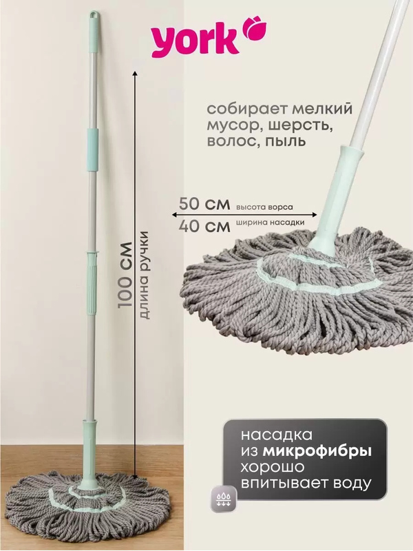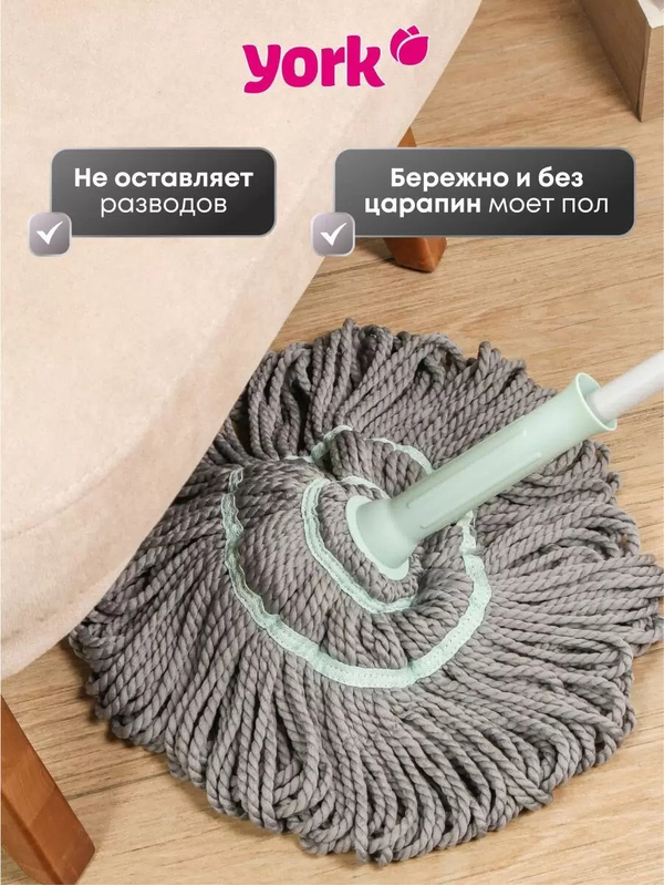 Швабра для пола самоотжимная веревочная YORK Твист, микрофибра