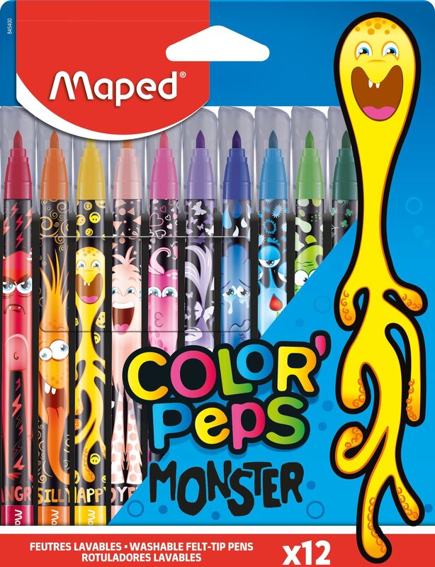 Яркий и незабываемый дизайн, каждый монстр имеет свой цвет и свое настроение. Учи английский вместе с Maped! Идеально подходят для детей от 4х лет. Незабываемый монстрический дизайн – дети в восторге! На каждом фломастере – уникальный дизайн