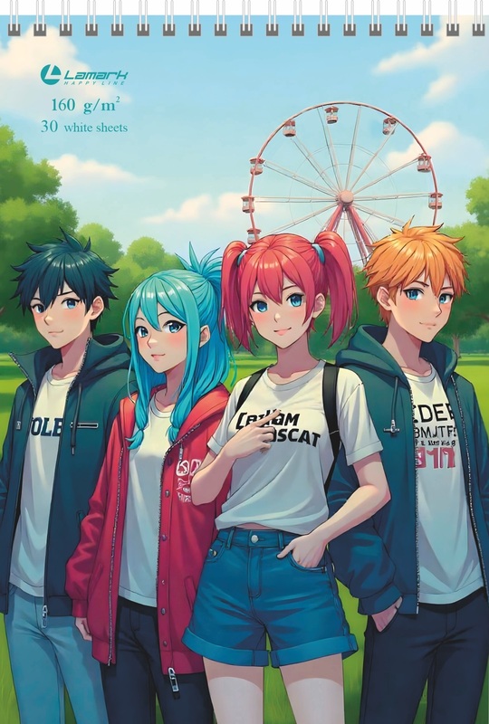 Скетчбук Друзья в парке, А5, 40 л., 100 г/м2, выборочный уф-лак, твердая подложка, спираль сверху