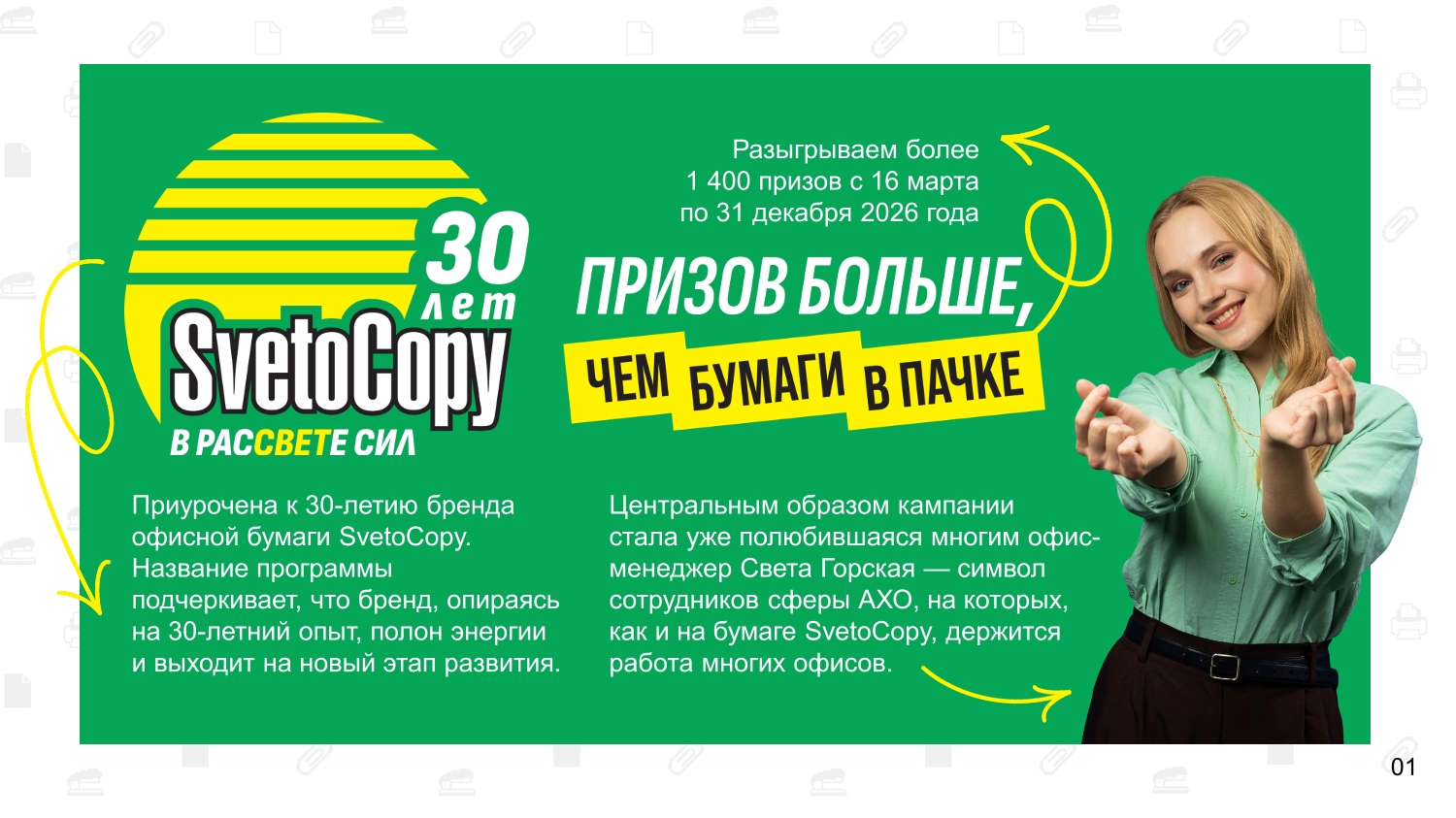 Призов больше, чем бумаги в пачке! Светогорский ЦБК отмечает юбилей офисной бумаги SvetoCopy